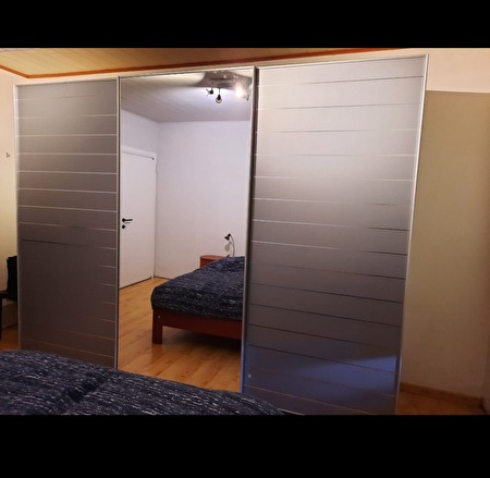3-delige kleerkast met schuifdeuren + spiegel te koop.