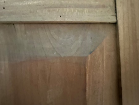 Zaagwijze panelen voornamelijk dosse gezaagd (ook vlak gezaagd genoemd) diepe roodbruine kleur met donkere schakeringen.