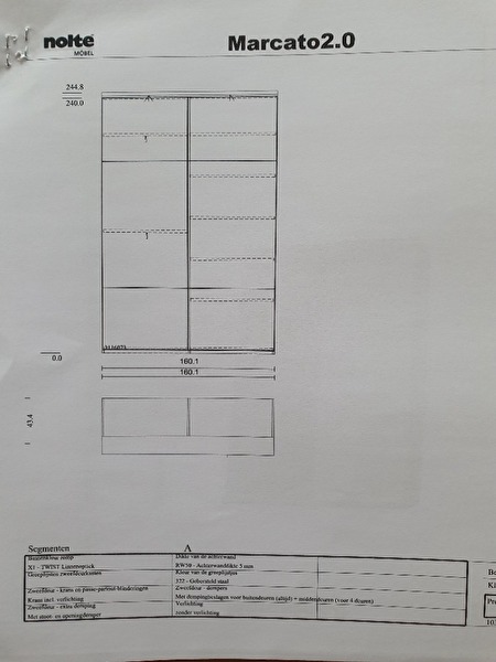 Prachtige kleerkast van het merk Nolte - Marcato.Afmetingen = 160 cm breed - 245 cm hoog (met verlichting/240 cm hoog zonder verlichting) - 52 cm diep