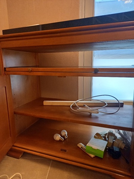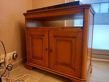 TV Kast met marmeren plaat, bovenkant beweegbaar. Afmetingen: 0,90 B x 0,82 H x 0,48 D, 3 cm dikke marmerplaat.