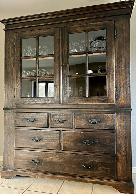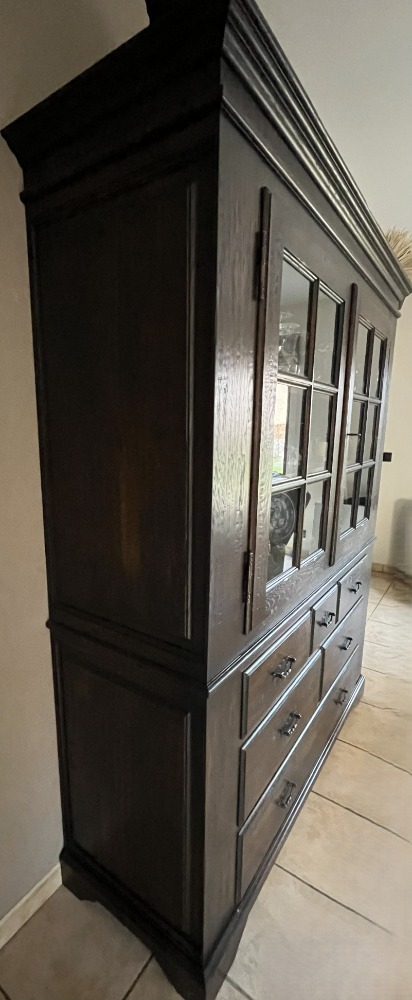 TE KOOP: DONKERE EIKEN VITRINEKAST
