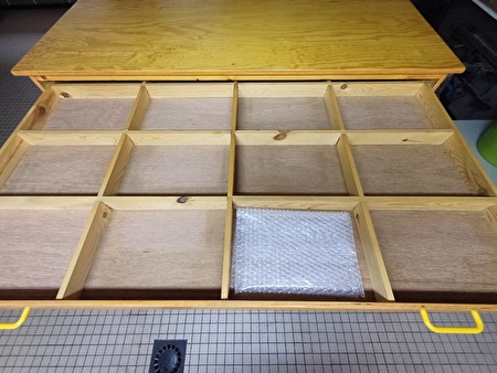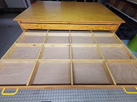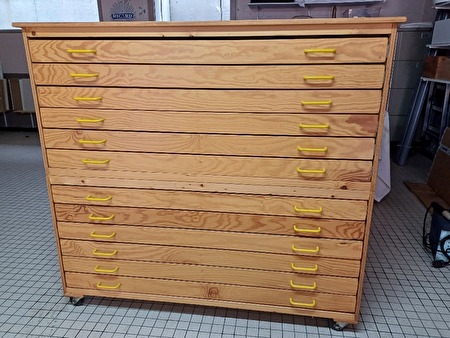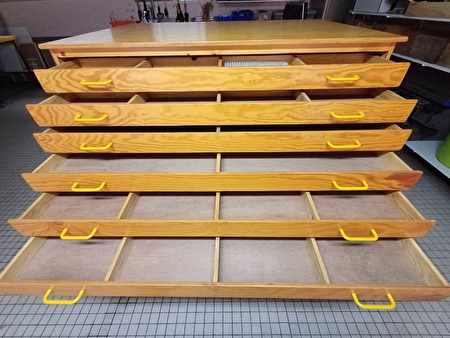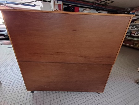 Voor jassen, hoeden, tassen. In zeer goede staat. Eikenhout, met 6 stuks waardevol beslag (messing). 1,16 m b X 0,30 m h X 0,20 m d.