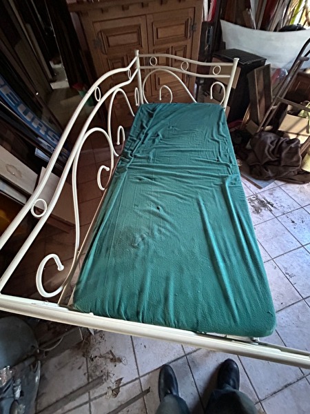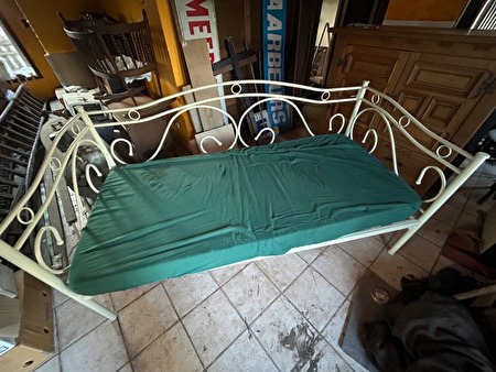 Eén persoons zitbed of ligbed met rugleuning in wit gelakt metaal