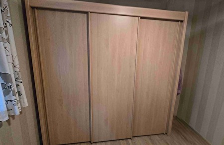 3 deurs kleerkast met schuifdeuren. Moet bij het terug in elkaar plaatsen wat verstevigd worden onderaan.