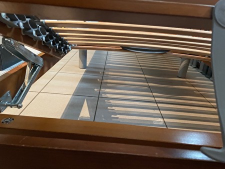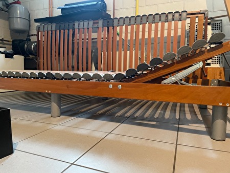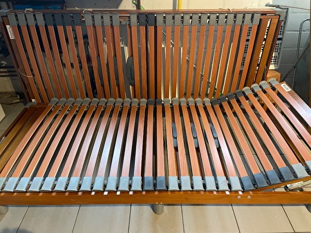 Twee aparte bedden met lattenbodem in goede staat te koop. Bedden kunnen samengevoegd worden tot 1 dubbel bed. Hoofd en voetenkant verstelbaar qua hoogte. Bruin houten kader, grijze poten.prijs : 100 €