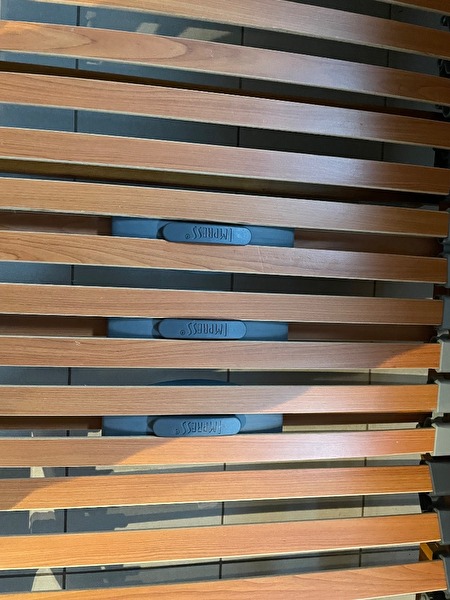 2 BEDDEN EN LATTENBODEMS 90*210 BRUIN HOUT