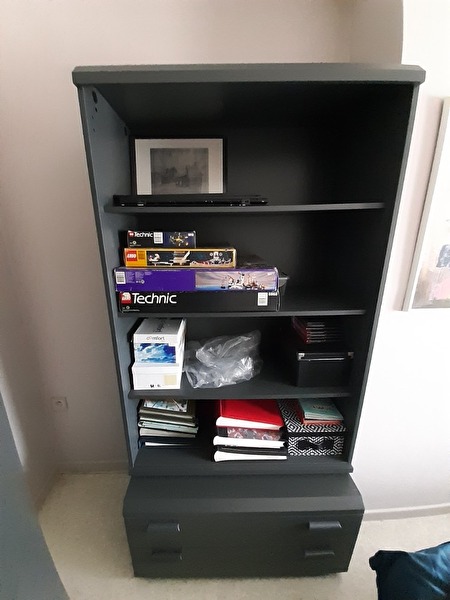 Boekenkast, bovendeel en onderdeel met schuiven: 91x41cm/52cm,