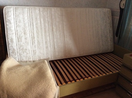 Mooie eenperssonskamer in zeer goede staat.Bed met lattenbodem en eventueel met matras en alle toebehoren, ook beddedengoed.