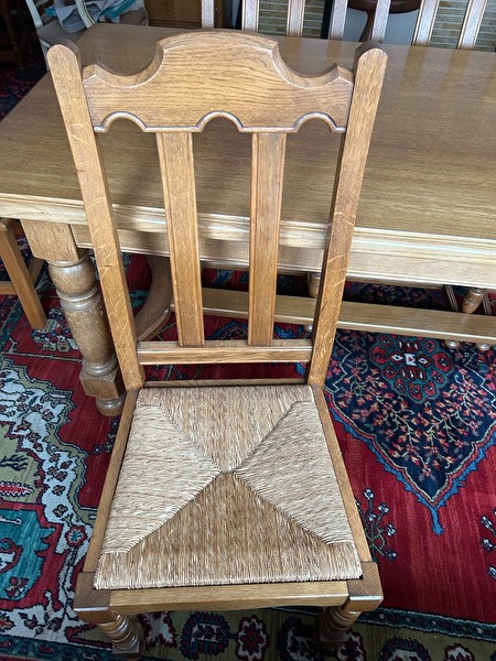 6 massief eiken stoelen met rieten zitting : alle riet is perfect in orde (zonder beschadiging of vlekken