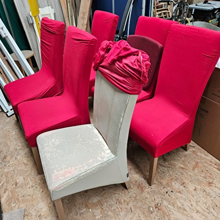 6 stevige stoelen wel het leder in beschadig. Daardoor hebben verschilende overtrek hoezen