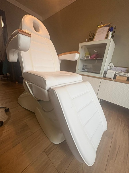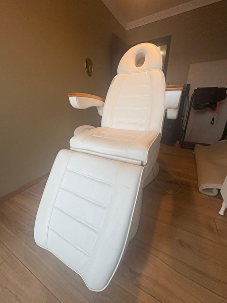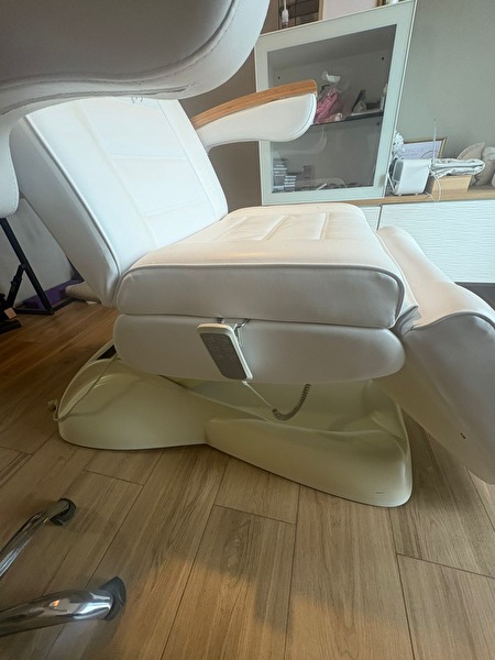 Professionele elektrische behandelstoel met houten armleuningen. Perfect voor schoonheidsspecialistes, pedicure, massage of gelaatsverzorging. De stoel is volledig verstelbaar (rug, been en hoogte) en werkt perfect via afstandsbediening. De bekleding is nog stevig en comfortabel, maar heeft zichtbare vlekken– zie foto’s. Geen scheuren of technische problemen, enkel esthetisch. Kenmerken: • Elektrisch verstelbaar • Stevige houten armleuningen • Hoofdsteun met gezichtsuitsparing • Zwaar, stabiel en van hoge kwaliteit • Kleur: wit Prijs: €725 (alles inbegrepen) Behandelstoel: €600 handdoekverwarmer: €75 instrumententafel: €25 salon krukje: €25