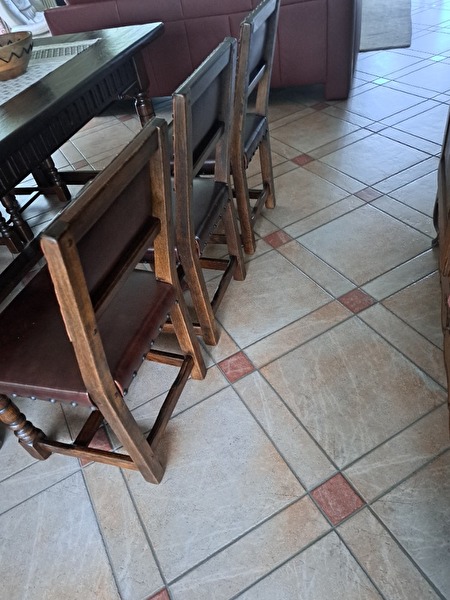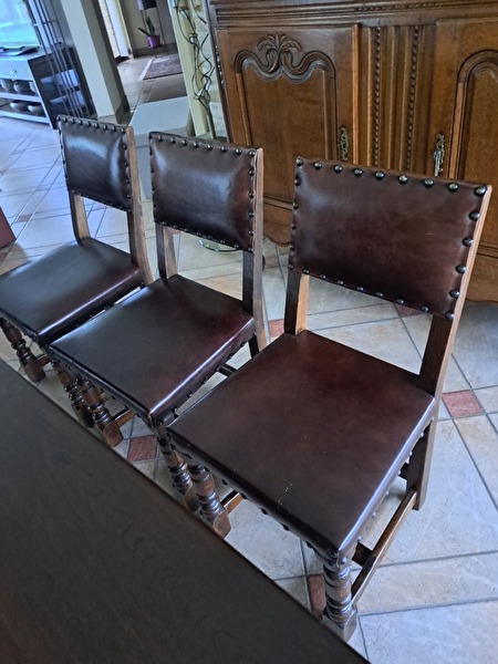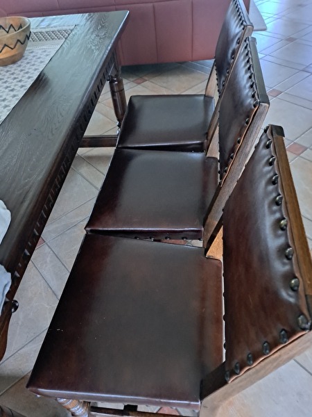 6 eikenstoelen in echt leder,per twee te verkopen.