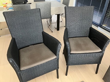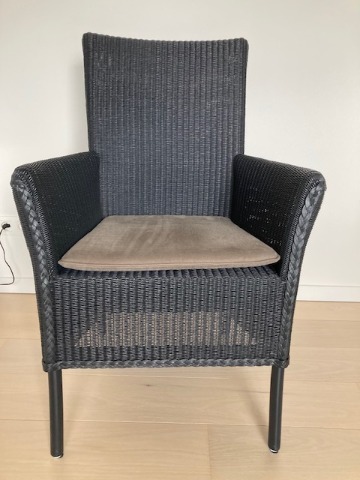 2 zwarte zeteltjes met armleuningincl. grijze kussens