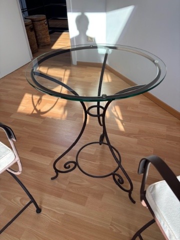 gietijzeren ronde tafel ( diameter 60 cm)met 2 stoelen . in perfecte staat verkoop wegens verhuis.