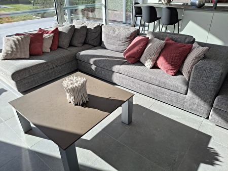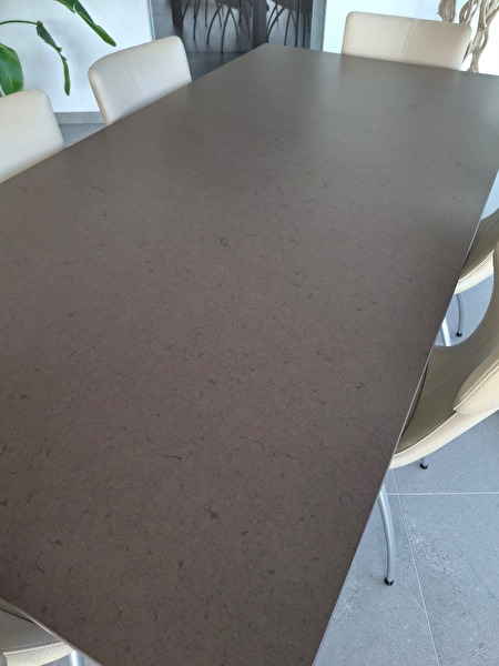 Eetkamertafel + salontafel uit Silestone natuursteencomposiet.(Opgelet ! Stoelen aan eetkamertafel zijn NIET te koop)