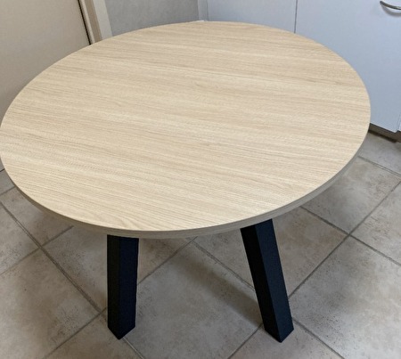 Ronde ( nieuwe) keukentafel met diameter 100cm en hoogte 75 cmkleur blad ; natuur eik