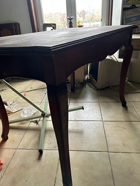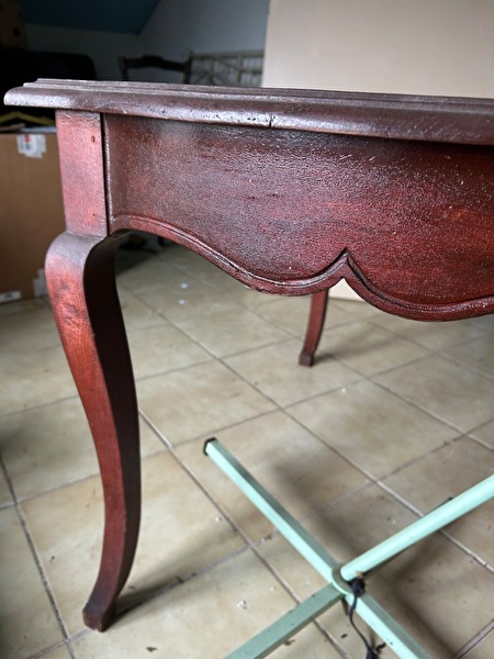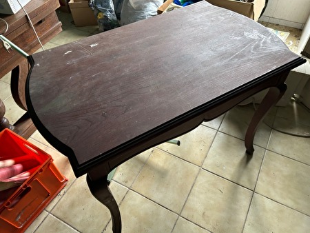 Tafeltje in olmenhout, gebogen uiteinden en gebogen poten