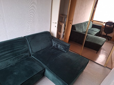 Stijlvolle en comfortabele hoekzetel in donkergroen velours.Wordt verkocht wegens herinrichting (geen plaats meer).