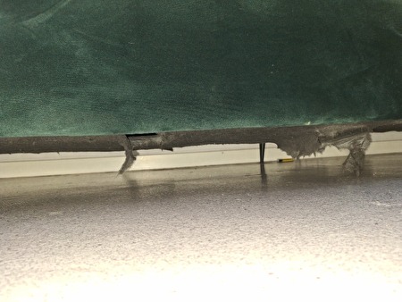 Er zijn 3 miniscule gaatjes op de chaise (van roken) en de ondervoering is onderaan gescheurd door onze katten (niet zichtbaar bij normaal gebruik).