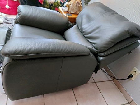 Twee grijze relaxen te koop. Ze zijn in een grijze kleur. Ze komen van T&T design en ze zijn in zeer mooie staat daar er altijd dekens hebben in gelegen. Ze kunnen gemakkelijk dicht bij de muur geplaatst worden daar ze vooruit uitschuiven.prijs : 600 € voor beide
