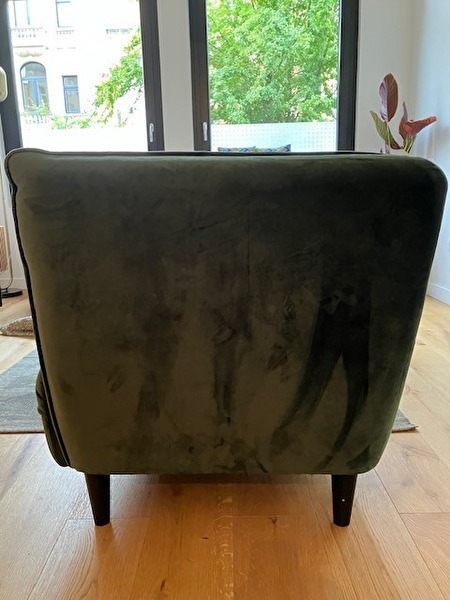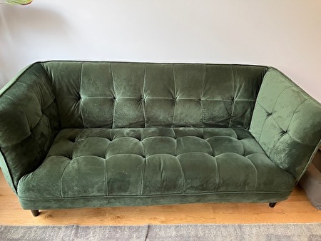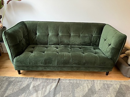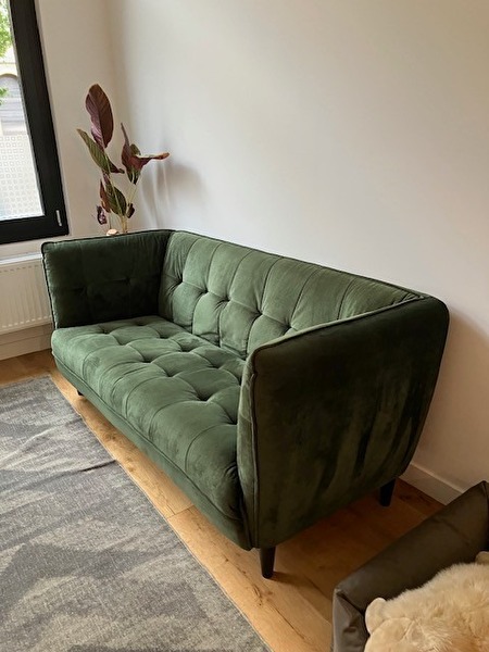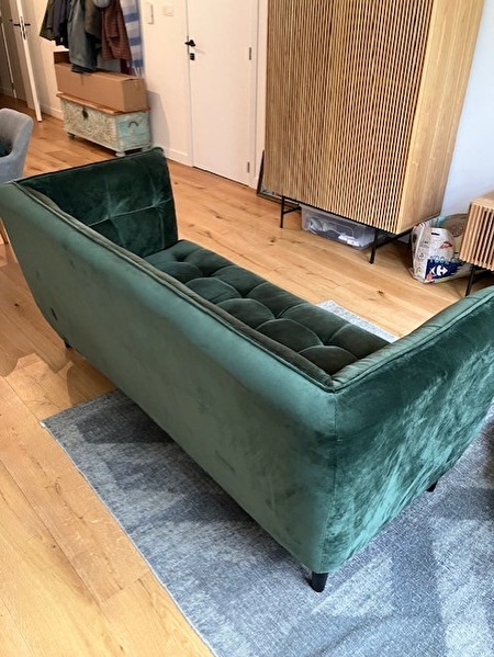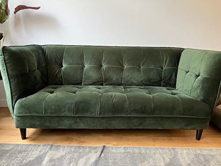 Donker groene fluwelen zetel met volgende afmetingen: 180 cm x 78 cm x 80 cm. Nog in zeer goede staat, ik doe hem weg omwille van verhuis.