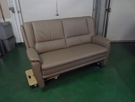 beige lederen zetel, breedte 1.70m, rughoogte 0.95m