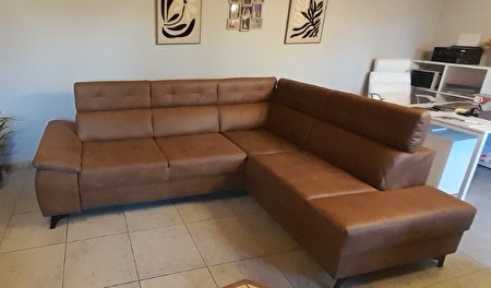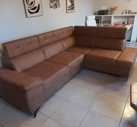 Spiksplinternieuwe hoeksalon (3 weken oud -niet gebruikt -fact. beschikbaar >3.000€, echt leder, cognackleur, 2,70m x 2 m. aanpasbare hoofdsteunen. Ik verkoop deze prachtige hoekzetel, past zowel in modern als klassiek interieur, omdat wij ons hebben verkeken op de L-vorm in onze living. Wij verkiezen toch de opstelling1zit, 2zit,... en gebruiken opnieuw onze vroegere zetels. Wegens herhaalde poging tot oplichting accepteer ik alleen overschrijving op mijn rek.nr. op voorhand of ter plaatse, of (liefst) betaling cash bij ophaling.prijs : 995 €