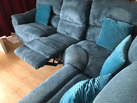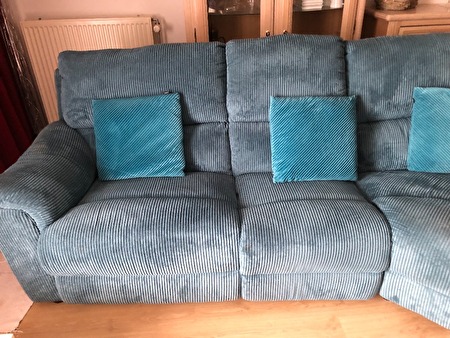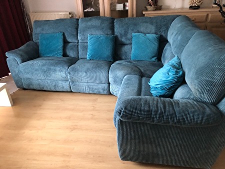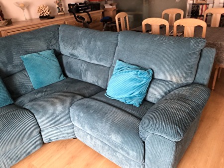 Zetel met kussens,lengte 2,70 m,breedte 2,10 m,hoogte 1,10 m,diepte 52 cm.