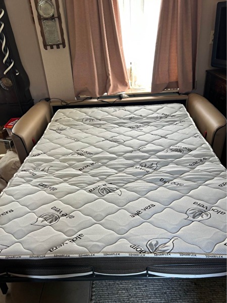Licht beige slaapzetel met extra matras voor 2 personen