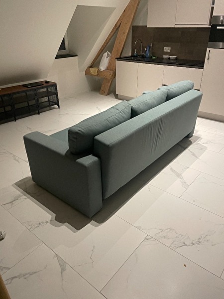 Deze mooie 3persoons sofa heeft weinig geleden. Het is een kleiner bankje, perfect voor in een studentenkot of kleinere woonkamer bijvoorbeeld.