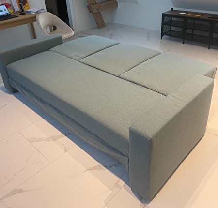 BRUGGE • Deze prachtige zitbank is een echte blikvanger voor uw salon! De zitting is uitschuifbaar, de rugleuning kan omhoog. Opzij zitten bovendien 2 verborgen lades. In prachtige staat want er lag altijd een doek over (in dezelfde stof, wordt meegegeven). meer...