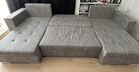 Te koop: zetel met slaapbed ingebouwd. Er is ook opbergruimte aanwezig in de zetel. Wij hebben deze mooie zetel online gekocht. Jammer genoeg blijkt deze nogal hard te zijn. Wij willen graag terug een zachtere zetel kopen, vandaar dat deze weg mag. De zetel is gloednieuw! (5 maand) We kochten hem op 9 juli voor 899 euro. Op de laatste foto kunnen jullie de stof beter zien. Geen schade!Afmetingen :