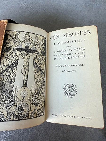 Mijn misoffer jeugdmissaal uit 1947. Oud misboek in goede staat. 616 + 38 extra pagina's pagina's. Met illustraties. Versturen via Bpost naar adres: 6,85 euro, naar postpunt 5,15 euro. Kan ook afgehaald worden na afspraak.