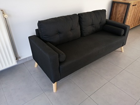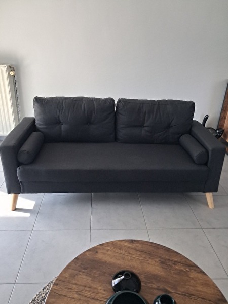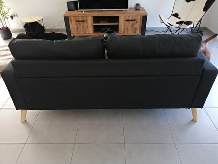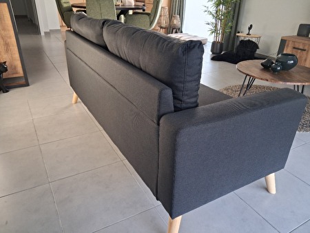 Brede, comfortabele zitoppervlak, Modern design, Rondom bekleed en dus vrij op te stellen, Verwijderbare kussenhoezen, 2 jaar oud.