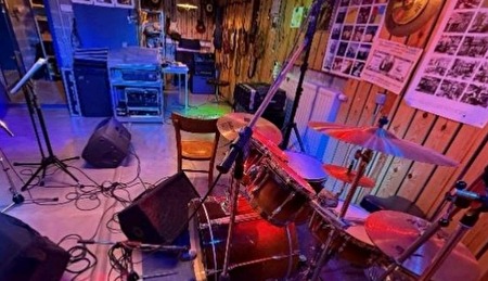 Drumstel permanent aanwezig in de repetitieruimte.