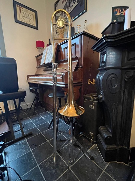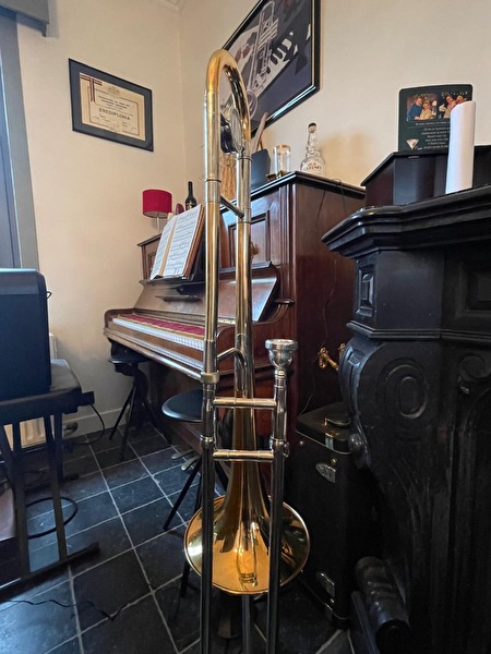 Te koop aangeboden: een originele King 3B+ trombone, vervaardigd in de Verenigde Staten. Dit model is wereldwijd geliefd bij jazz- en bigbandtrombonisten vanwege zijn warme, krachtige klank en uitstekende projectie.Specificaties: