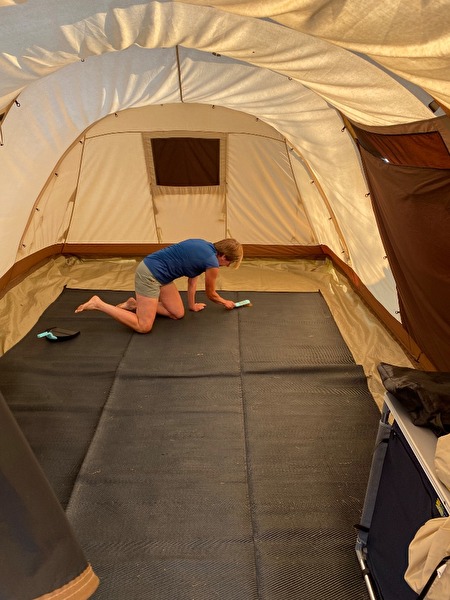 Complete en in goede staat verkerende gezinstent van Outwell. Altijd gebruikt met extra grondzeil om de uitritsbare bodem van de tent netjes te houden. Komt met extra dikke vloermat. Wij gebruikten deze tent enkele jaren toen de kids nog meegingen op vakantie. Nu is ze te groot voor ons tweeën.prijs : 400 €