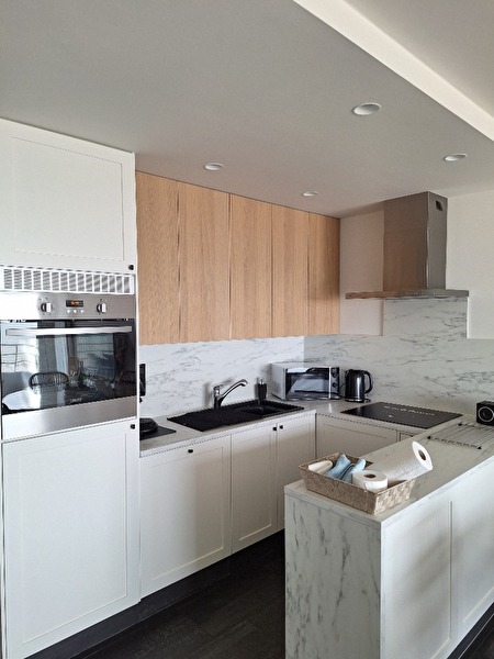 * volledig geïnstalleerde keuken (vaatwasser, microgolf, oven, inductiefornuis, Senseoapparaat, waterkoker, broodrooster)