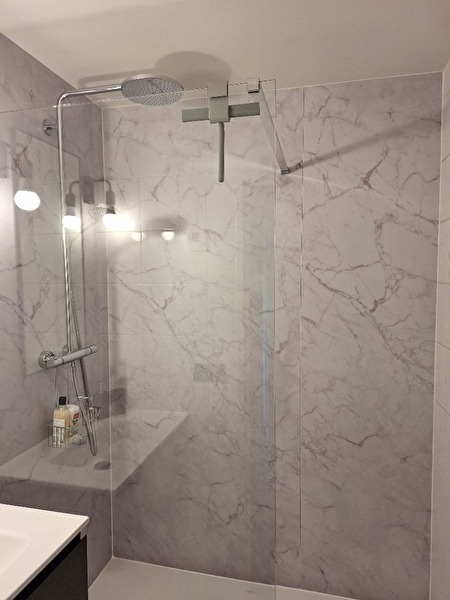 * badkamer met inloopdouche (haardroger, douchegel, shampoo, handzeep aanwezig)