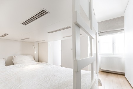 Het is gelegen in het rustige en gezellige Oostduinkerke, op wandelafstand van Koksijde en Nieuwpoort. Het appartement op de 5e verdieping heeft een mooi zijdelings zicht op zee, en ligt op slechts enkele stappen van de dijk. Er zijn twee slaapkamers, met telkens een dubbel stapelbed, wat ruimte biedt aan max. 8 personen. Het appartement is voorzien van alle comfort, zoals bv wifi en interactieve TV (Telenet), wasmachine/droogkast (strijkijzer en -plank), voldoende opbergruimte, combi-oven, babybedje, 2 strandstoelen, gezelschapsspelletjes, .... Kantelramen aan de voorkant (om te verluchten) en kleinere ramen aan de achterkant, voorzien van een balustrade en een duivenwering.