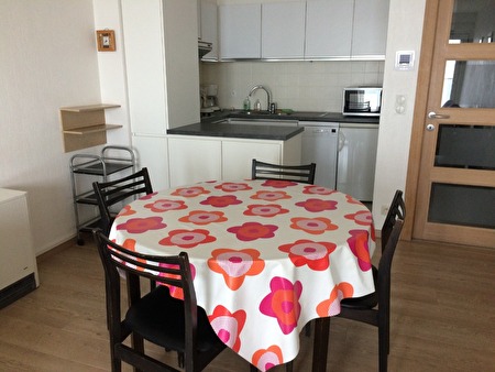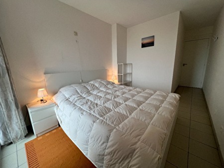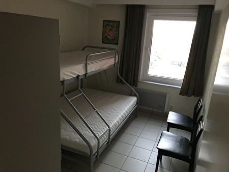 2 slpk, 5e verdiep. Terras vooraan met frontaal mooi zeezicht, achteraan ook balkon. Alle comfort. met garagebox achteraan het gebouw en bovengronds met binnendeur naast de lift. Privéberging.5 pers. resp. 2 pers bed en stapelbed: 2 pers. onderaan en 1 pers. bovenaan. kleine gemanierde hondjes welkom. Laten poetsen is mogelijk. Dicht bij het centrum maar toch buiten de drukte. Gezellig appartement. Flatscreen, wifi, enz..