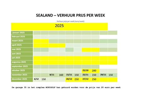 Een garage (niet onder het gebouw) kan gehuurd worden aan de prijs van 20 euro per week.