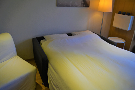 • De studio is ideaal voor 2 personen maar er kan een 3e persoon (kind) ook slapen. De studio is uitgerust met een zetelbed voorzien met een zeer goede matras (1,40/2m) voor 2 personen en een zetelbed voor 1 persoon, donsdekens en kussens.