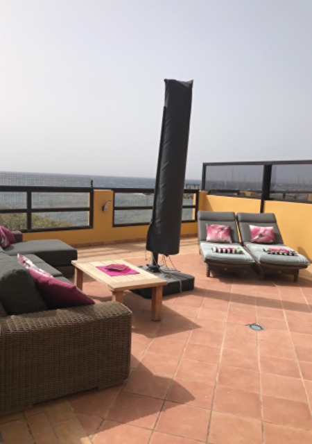 Op het zuidgericht terras van 50 vkm kan U zich neervlijen op de luxueuze ligbedden en genieten van het uitzicht over de Atlantische oceaan!
