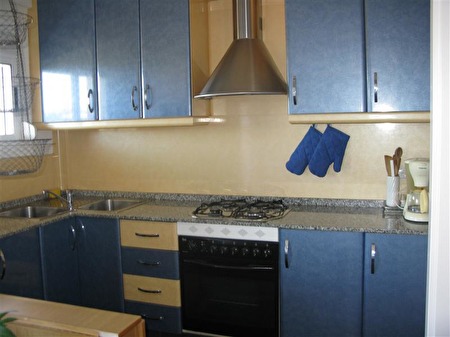 Ruim, heel rustig gelegen hoekappartement (80m2) op bovenste (5e) verdieping met groot hoekterras. Vernieuwd interieur: nieuwe meubelen, nieuwe matrassen enz...Grote living met TV, volledig ingerichte keuken met 4 kookpl. electr.oven, microgolf, ijskast en diepvriezer, 2 slaapk, badkamer met ligbad,douche, lavabo en wasmachine. Overal airco, dubbele beglazing en rolluiken.