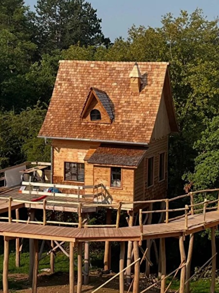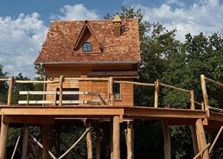 Recent gebouwde luxueus ingerichte boomhut op het terrein van een hotel. De boomhut ligt aan de rand van een bos, waar het heerlijk wandelen is.Privé sauna op het terras.