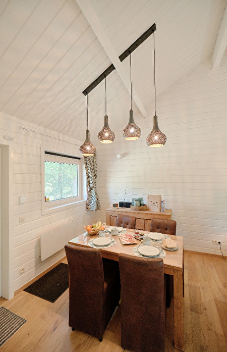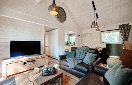 Chalet D'un AmiGeniet van een comfortabel verblijf in onze volledig ingerichte chalet op een klein vakantiepark. Met 2 slaapkamers, een moderne badkamer met inloopdouche, een uitgeruste keuken, een sfeervolle living en eetruimte biedt deze plek alles voor een zorgeloze vakantie. Een terras (15 m²) en de pellet kachel zorgen voor extra gezelligheid.