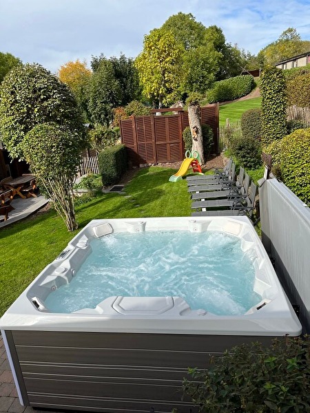Chalet voor 9p met sauna en jacuzzi (privé)In het bos ligt dit prachtige chalet voor 9 personen. De tuin is omheind, en geheel privé kan je gebruik maken van de jacuzzi en de sauna. Verder zijn er veel speeltoestellen en een echte vuurplaats. Barbecue en wifi. Voldoende parkeerruimte.