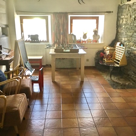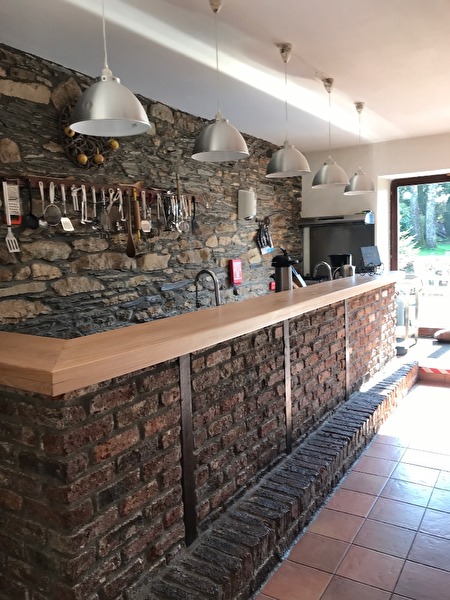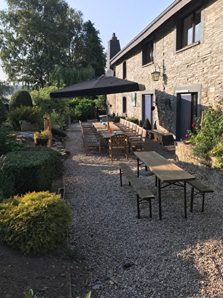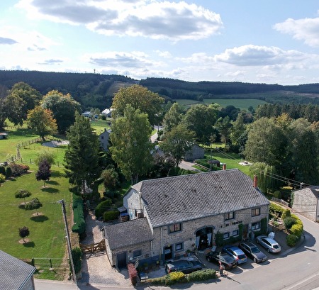 Familie vakantiehuis Gite Ardennais tot max. 16 personen, is landelijk, zeer rustig gelegen in prachtige natuurgebied van de skipiste Baraque de Fraiture, met 6 slaapkamers + 6 badkamers ( douche+wastafel+toilet zijn privé op elke slaapkamer) + compleet omheinde tuin van 1250m2 + terras + overdekte BBQ plaats.Beneden: hal, extra toiletgroep, speelkamer voor de kinderen voorzien van tafelvoetbal, 4 op 1 rij, krijtbord, etc, keuken met bar, eetkamer en huiskamer voorzien van houtkachel.