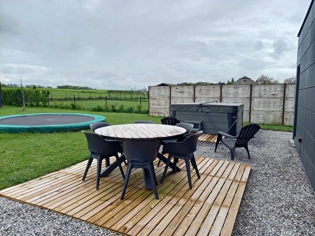 Vakantiehuis voor 6-8 personen met jacuzzi en omheinde tuinAls laatste woning van een rustige straat heeft u hier een prachtig uitzicht vanuit de tuin en de jacuzzi over de velden. Er is een gezellige woonkamer met televisie met Chromecast. Uiteraard is er ook wifi aanwezig.